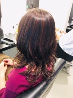 ハイライトしか入れてませんが黒髪だったお客様の髪の毛も明るさがまして動きが出ていい感じに!!
